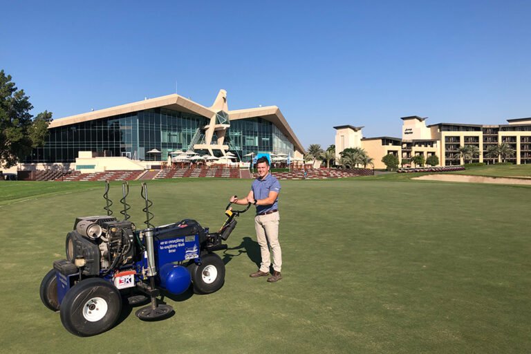 “The Air2G2 has not replaced any machine or agronomy practice but rather is giving additional benefits. We got it to help with compaction and salt build-up caused by the quality of water we have at our facilities. It gets very hot in the UAE, and the Air2G2 allows us to provide deep aeration in the soil profile without exposing or opening the entire surface to the desert heat compared to more traditional aeration methods.